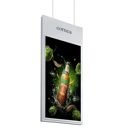 Hanging Kiosks are ceiling-mounted digital display solutions designed to deliver high-impact visual communication without occupying floor space. These kiosks are ideal for high-footfall areas where visibility from multiple angles is essential. Their suspended design ensures clear sightlines while maintaining a clean and modern environment.